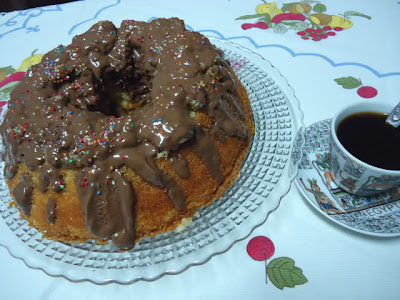 O meu só teve um senão - como sou apressada desenformei o bolo antes de arrefecer completamente, o que fez com que ficasse um pouco desfeito em cima. Mas resolvi o problema tapando a "asneira" com uma calda de chocolate...