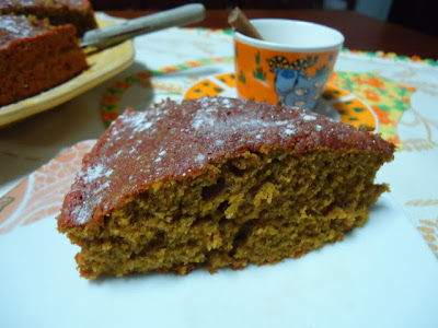 A receita veio do blog Coisas Doces e ao olhar para o bolo, e também ao prová-lo, ninguém diria que não era chocolate!