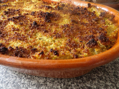Se quiser cubra com pão ralado aromatizado (piquei fatias de pão paleo com alho e azeite, até ficar tudo esfarelado). Leve ao forno, pré-aquecido a 200º, durante cerca de 20 a 25 minutos.