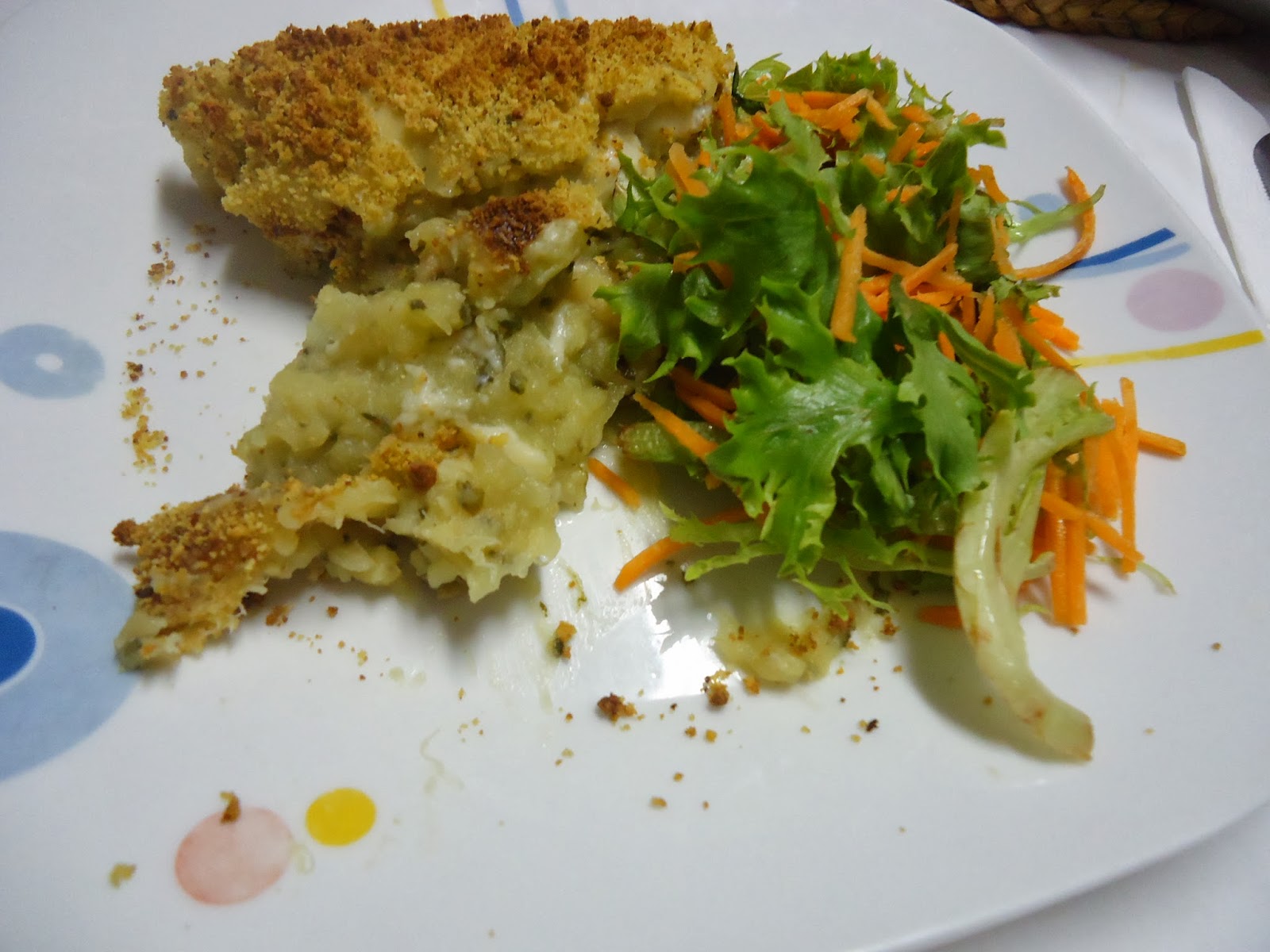 Se quiser cubra com pão ralado aromatizado (piquei fatias de pão paleo com alho e azeite, até ficar tudo esfarelado). Leve ao forno, pré-aquecido a 200º, durante cerca de 20 a 25 minutos.