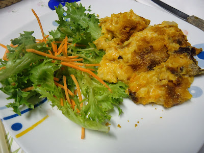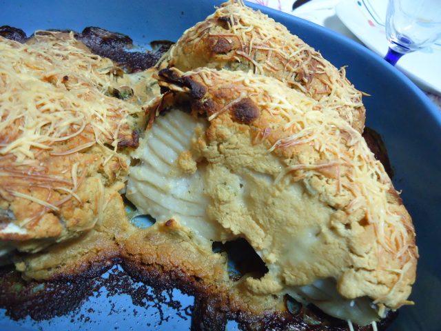 Cubra as postas de bacalhau com o molho, polvilhe com o queijo ralado e leve ao forno a gratinar a 180º cerca de 20 minutos (mas não se esqueçam do bacalhau no forno como eu fiz...).