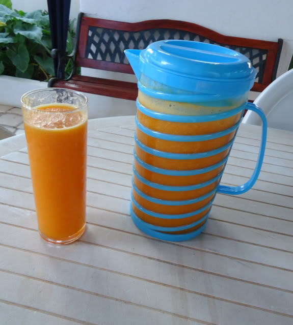 Embora o tempo já esteja a arrefecer, um sumo natural sabe sempre bem. Aqui está um copo servido especialmente ao homem cá de casa, que acabava de chegar de uma grande volta de bicicleta!