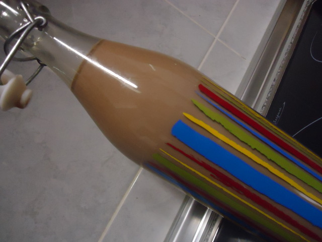 Colocar numa garrafa grande de vidro ou em várias garrafas pequenas e levar ao frio.