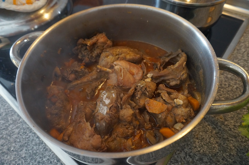 Entrei no supermercado, dirigi-me ao talho, comprei o coelho... cheguei a casa, agarrei na Mycook, preparei o jantar... depois foi só colocar num tacho na hora de servir...