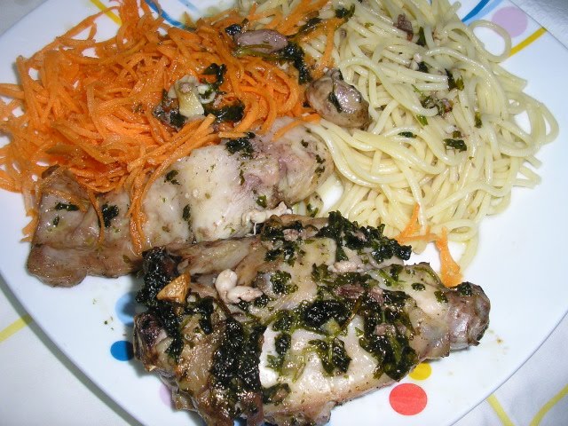 Coelho é uma carne muito apreciada por todos cá em casa (ok... menos a cabeça - essa fica sempre para a cozinheira: eu).Coentros é também uma erva aromática bastante apreciada... menos pela filhota, mas desta vez até comeu e nem reclamou.