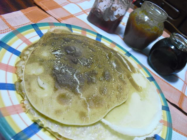 Andei montes de tempo a bradar aos sete ventos que nunca tinha feito panquecas, mas agora tomei-lhe o gosto e não quero outra coisa: de vez em quando lá saem umas panquecas para o lanche.Quando vi esta receita no blog da Borboleta Africana fiquei literalmente a babar... é que eu adoro o sabor da farinha de alfarroba.