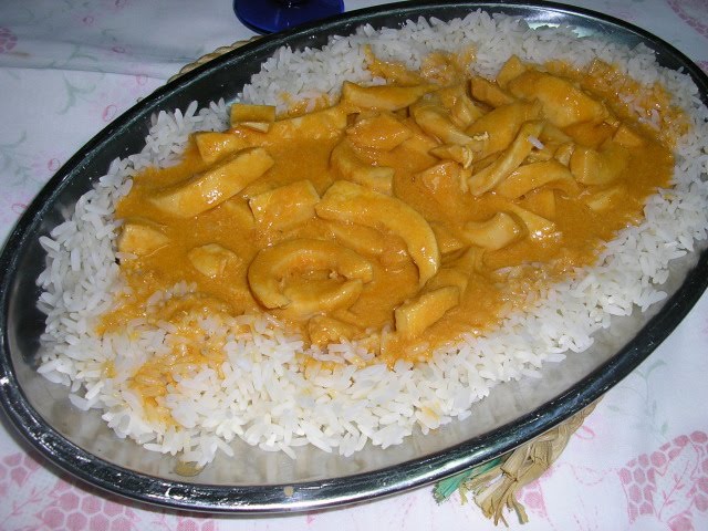 Uma receita que surpreende pela sua simplicidade e sabor e que tem uma cor linda, mesmo a lembrar o dourado das estrelas natalícias. Peço apenas desculpa à Catarina por não ter decorado a mesa convenientemente com adornos de Natal, mas quando me lembrei... já era.
