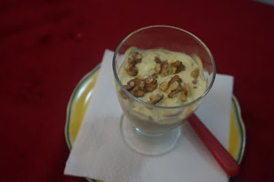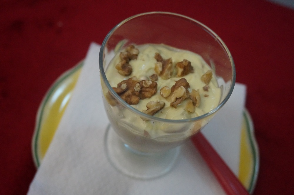 Colocar numa taça, polvilhar com frutos secos a gosto e servir de seguida.