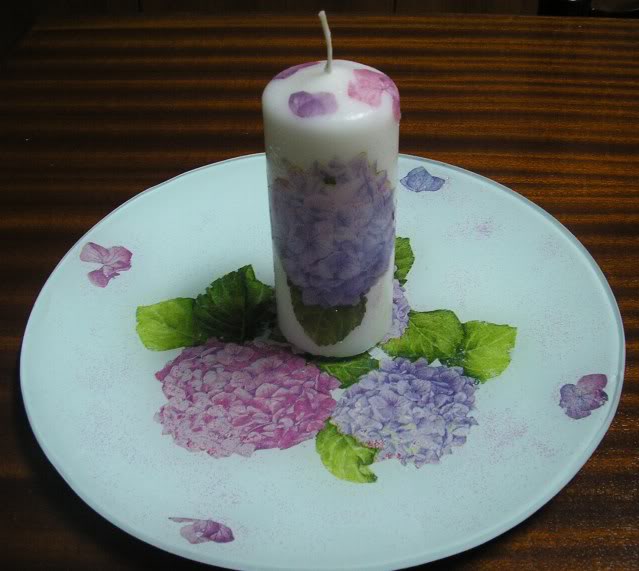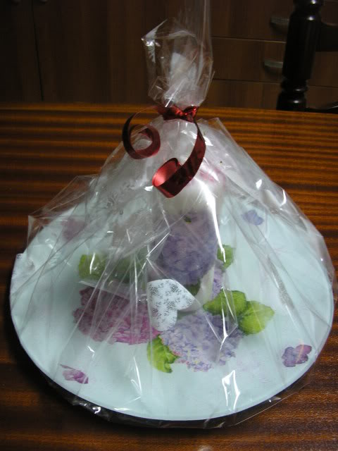 Um conjunto de prato com vela que foi feito para oferecer a uma antiga colega de trabalho no seu aniversário.