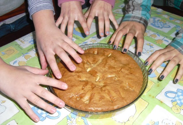 Dia em que a minha filha traz colegas para casa para fazerem trabalhos de grupo é certo e sabido que tem que haver sempre bolo. O que é justo: já que as pequenas vêm para trabalhar, é merecido que no fim do trabalho tenham um bolinho para o lanche.No último trabalho de grupo feito na minha casa, eu estava com um ataque de perguicite aguda e não me apetecia ir dar volta aos livros e cadernos de culinária em busca de uma receita.